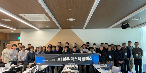 지난 11월, 이러한 막막함을 '실질적인 로드맵'으로 바꾸기 위해 다양한 산업군의 실무진과 경영진이 한자리에 모였습니다. 총 16개 기업, 36명의 수강생들이 치열하게 고민하며 답을 찾아간 매직에꼴 <AI 실무 마스터 클래스>의 3주간의 기록을 공개합니다.