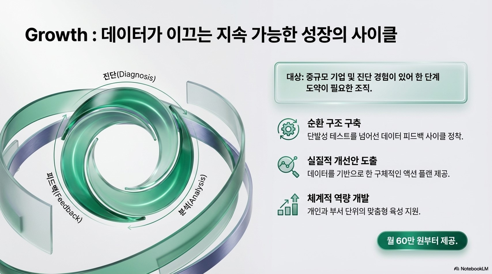 한 번의 이벤트로 끝나버리는 진단이 아니라, 기업의 성장 단계에 맞춰 지속적으로 인재를 육성할 수 있는 방법은 없을까요?